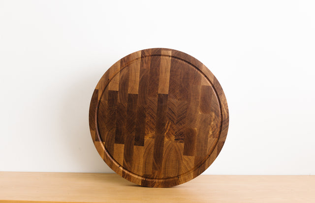 Introducing our 21" round cutting board, a luxurious kitchen essential crafted from premium wood with exceptional attention to detail. Available in three thicknesses—3/4", 1 1/2", and a robust 2 1/4"—this board provides the perfect balance of style and durability for any culinary task. Choose between edge grain for a classic, streamlined appearance or end grain for a knife-friendly surface that lasts. Enhance your cooking experience with the optional juice groove, designed to keep your workspace tidy. Whether for daily use or entertaining guests, this cutting board is the perfect blend of form and function.